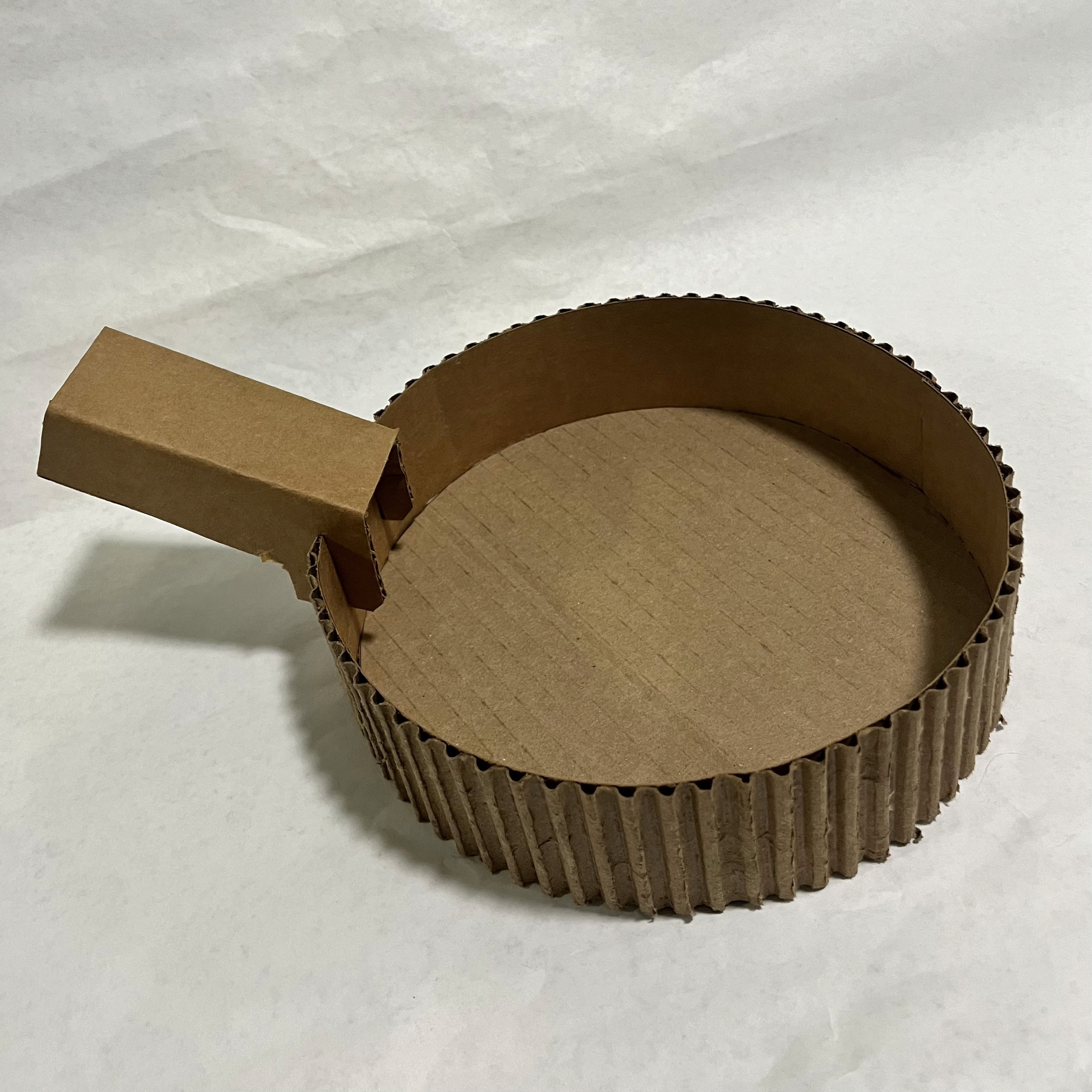 Initially, I created a simple, one-piece handle with two folds that attached at the top rim of the pan - this was too flimsy and the connection was weak