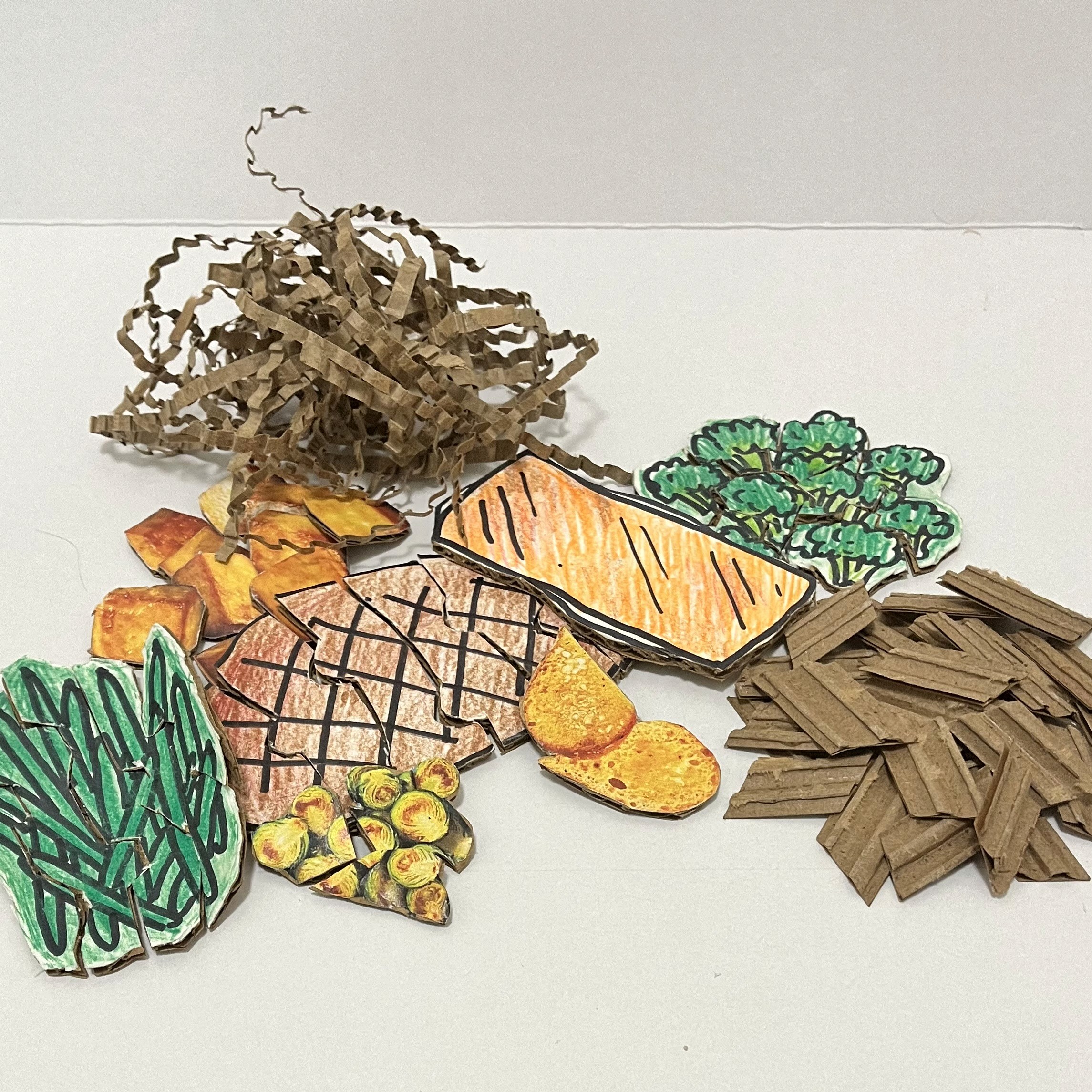 I created a cardboard toy and correlating instructions that allow users of the service HelloFresh to make a fake cooking set for their children entirely out of the meal-prep packaging.