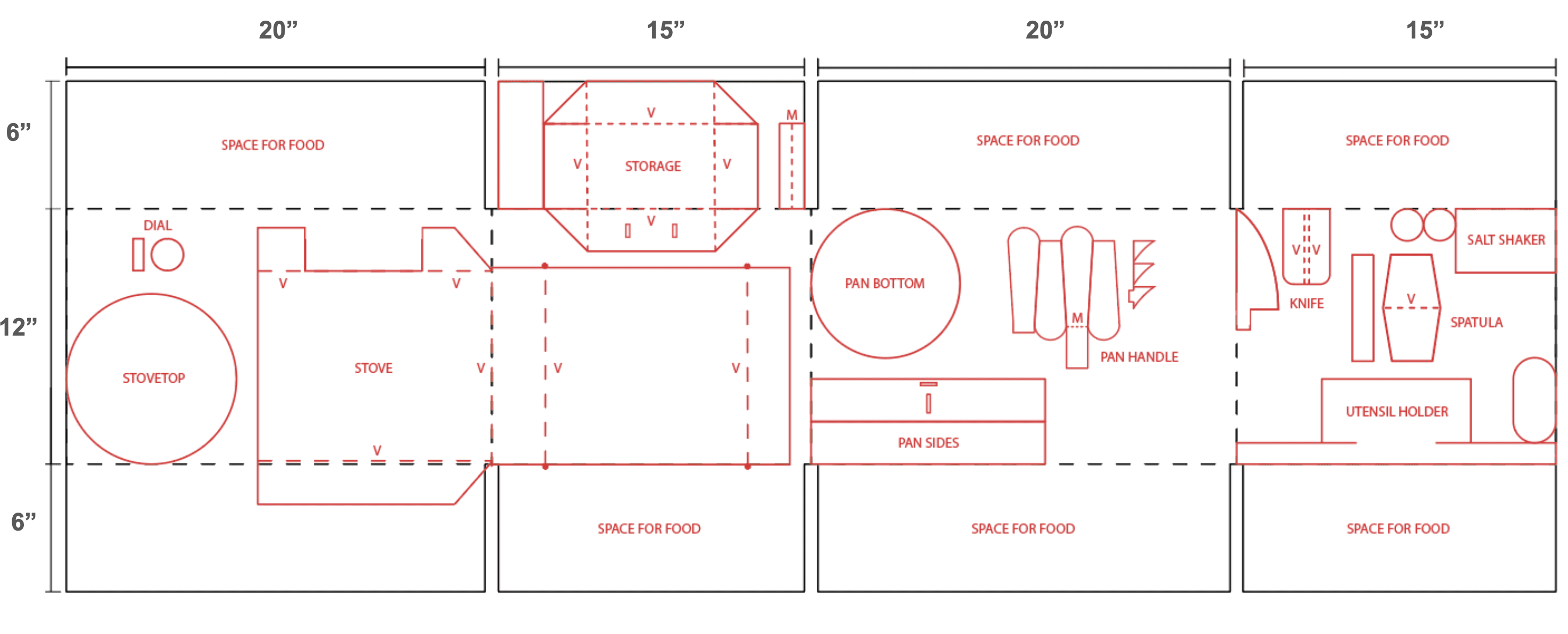 After initial prototyping, I participated in several critique sessions to refine down to my final concept, a cooking set associated with the company HelloFresh. This resulted in another round of prototyping, but at a higher fidelity.